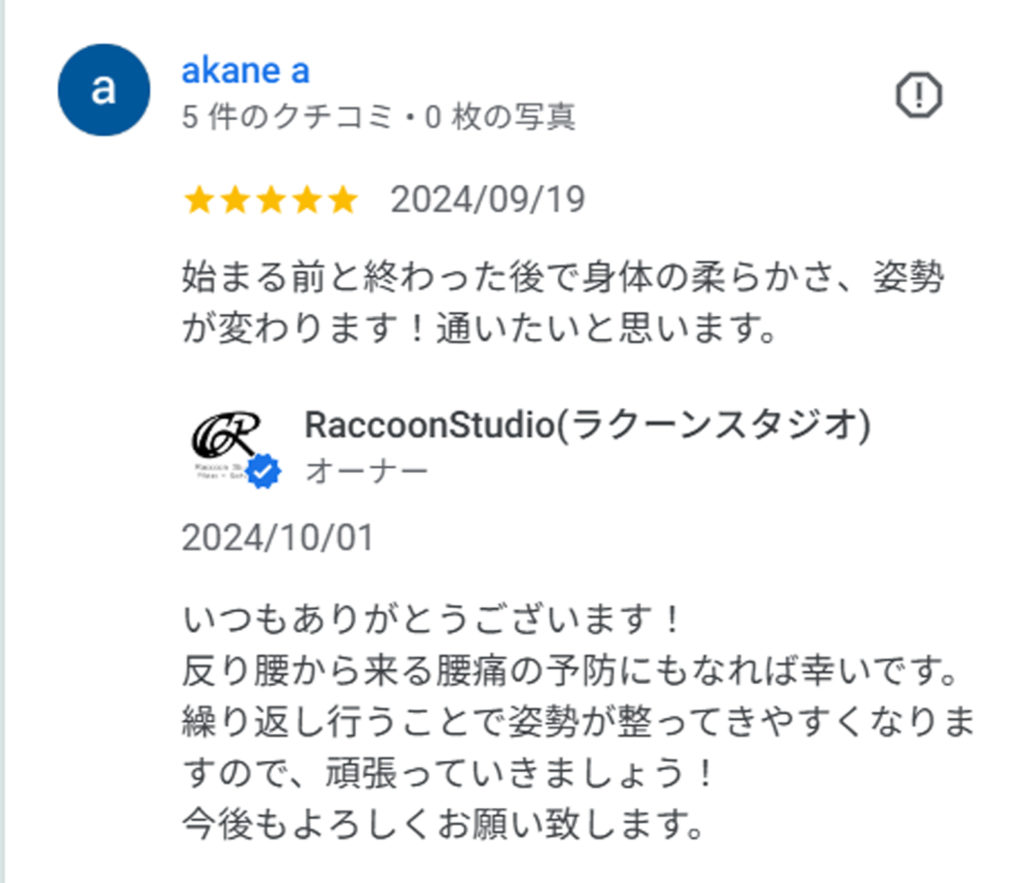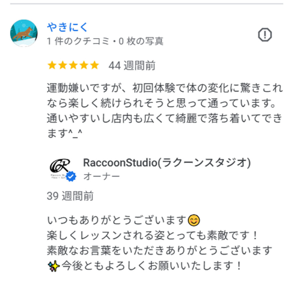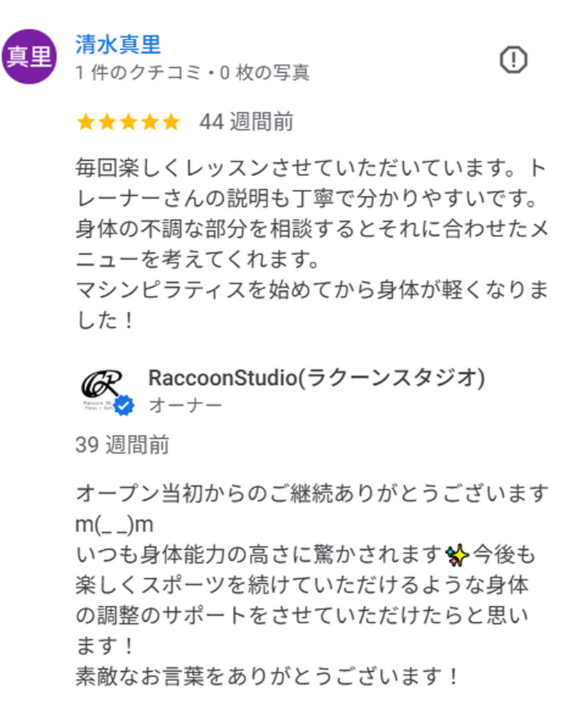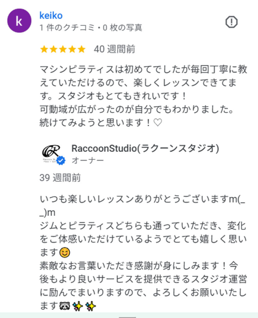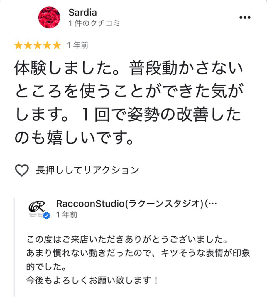 ピラティス初めてですごく緊張して行きましたが、細かい動きやどこに効いてるかなど丁寧に教えてくれます。